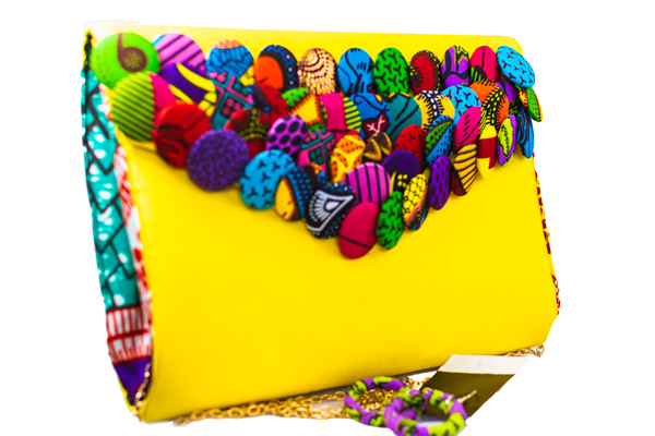 Clutch bag set, Beautifully handcrafted yellow button and beaded Ankara set. Beautifully handcrafted yellow button Clutch Set. Includes a clutch bag, a beaded necklace and a set of earrings. This set has been designed out of high-quality African fabric and will provide a perfect finish to a beautiful dress.
