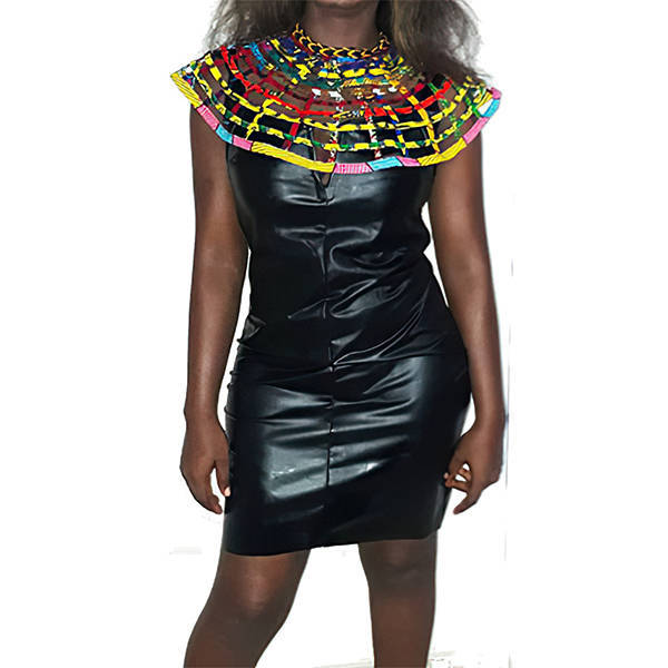 This versatile handcrafted web cape, clutch bag and earrings set will compliment any attire.